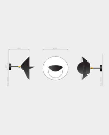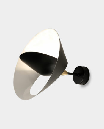 Petite lampe à poser « Saturne » (1957), disponible en noir ou blanc. L’intérieur du réflecteur est toujours blanc brillant. Rotation possible jusqu’à 270° et inclinaison du réflecteur jusqu’à 55°.