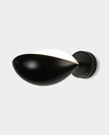 Applique murale « Conche »  (1962), en noir ou blanc, idéale pour sublimer votre intérieur avec son design unique. L’intérieur du réflecteur est toujours blanc brillant. Rotation possible du bras jusqu’à 270° et inclinaison du réflecteur jusqu’à 50°. Cette applique est disponible en version Gauche ou Droite.